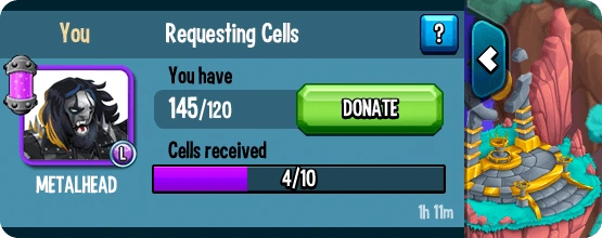 Players can request or donate monster cells to teammates using the Team Chat. Donating cells will grant XP, gold, and War Coins to the donator.